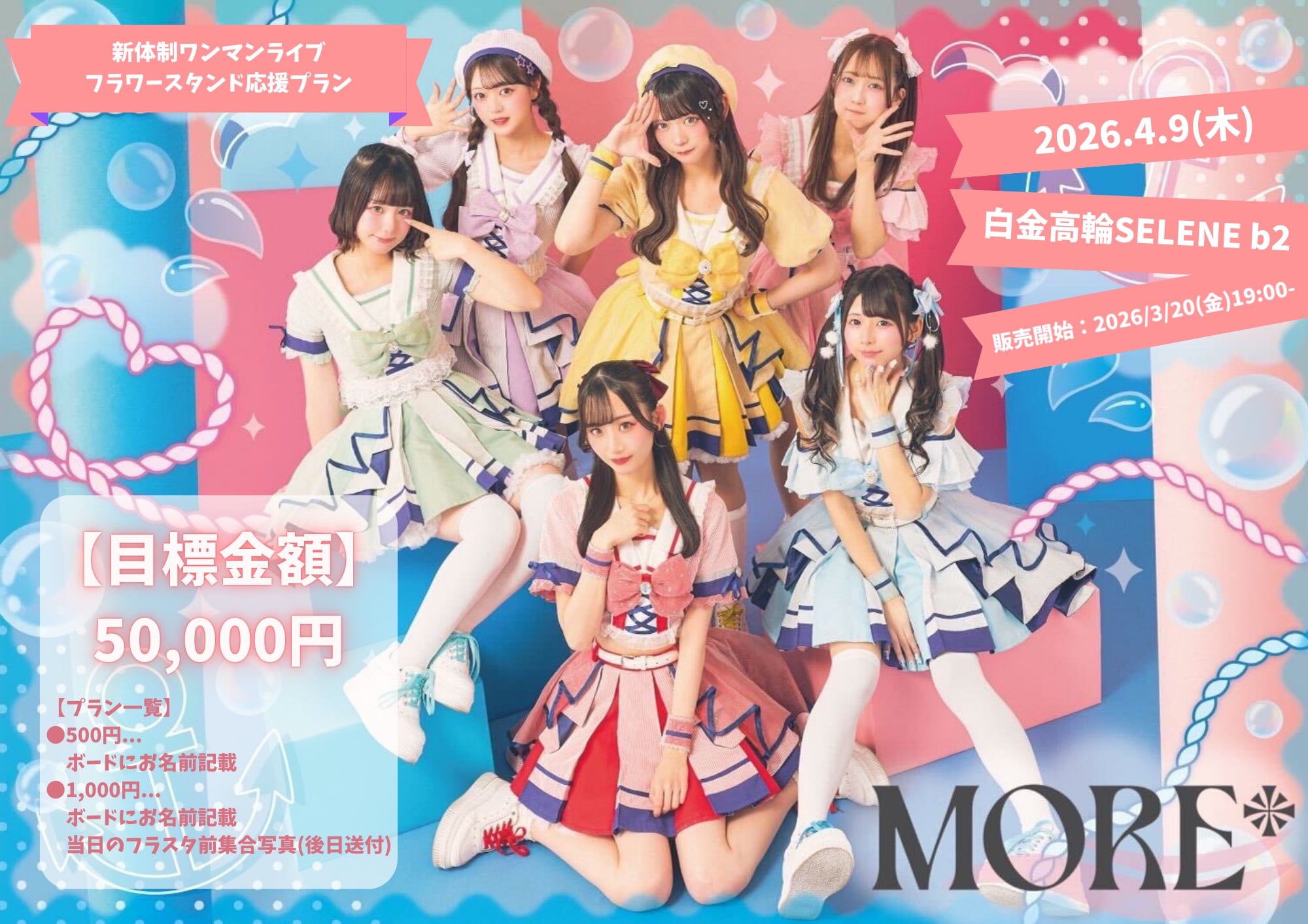 【MORE*】4/9(木)新体制ワンマンライブ開催記念フラワースタンド応援プラン(500円)の商品ページです♪