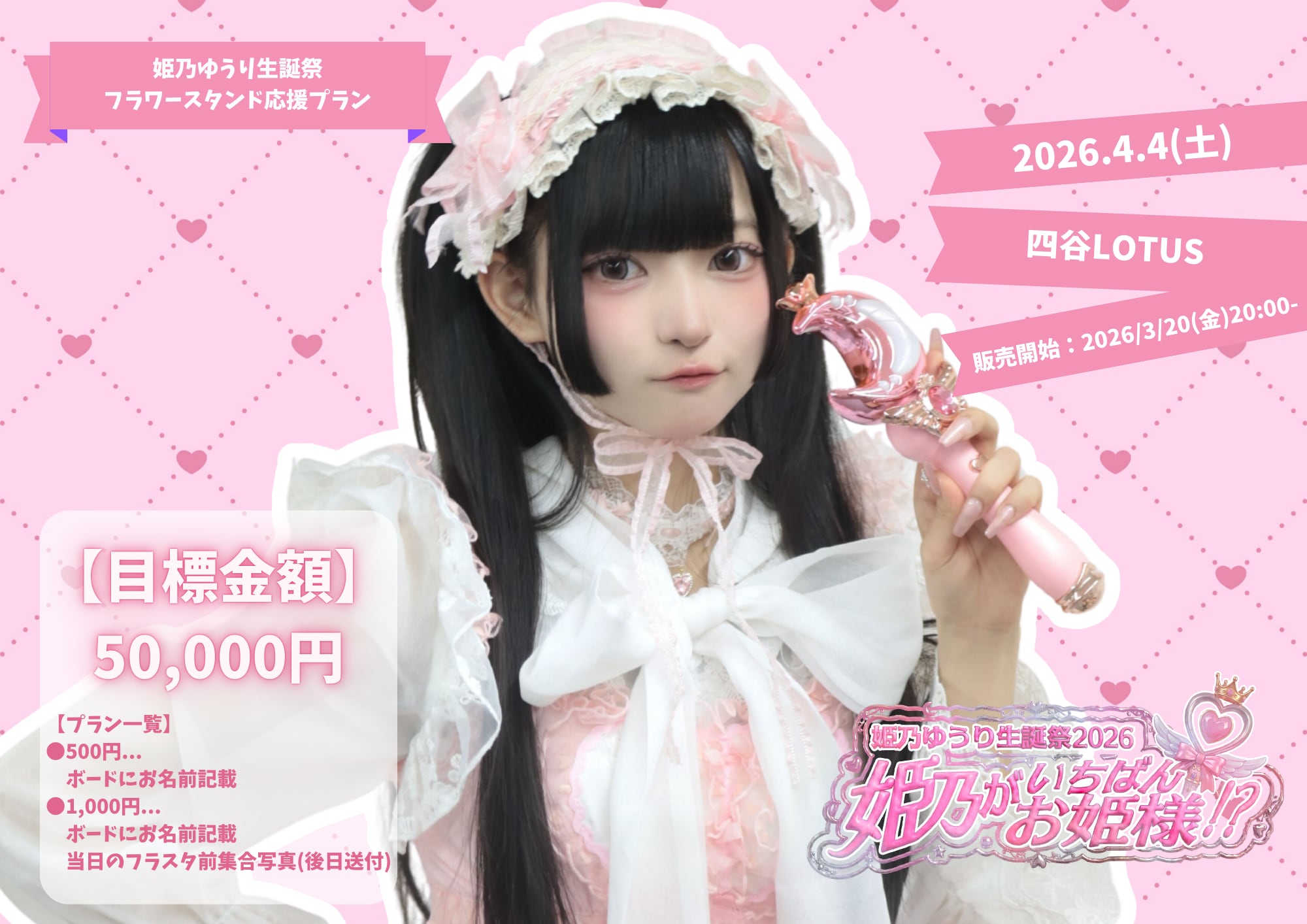 ♡集まった金額は全て2026/4/4(土)に開催予定『姫乃ゆうり生誕祭』の会場、四谷LOTUSに設置されるフラワースタンドに使用されます!